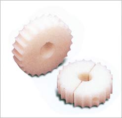 Drive Sprockets & Idlers Drive Sprockets Since our establishment, we are engaged in manufacturing of a wide range of Drive Sprockets that are extensively used for pulling chains that can be made from plastic or stainless steel. The drive sprockets are manufactured utilizing high grade of raw material that is tested and procured from certified vendors. Our range of split drive sprocket is manufactured utilizing reinforced polyamide and is used with stainless steel chains. These sprockets are extensively used with straight running SS chains. Available in varied types and dimensions, such as URZ 19-812 19-117.0 mm & 117.3 mm, URZ 21-812 21-129.2 mm & 130.0 mm and URZ 25-812 25-153.2 mm & 154.2 mm, these can also be customized as per the requirements of our clients. Split Sprocket (Moulded) Features Application : To be used with Straight Running SS Slat Chains (series 812, 815) & Magnet Flex SS Slat Chains (series 881M) Material : URZ Series - Glass Fibre Reinforced Polyamide Hardware : SS 304 Technical Specifications Part No. No. of Teeth Outside Diameter Pitch Diameter Inside Diameter URZ 19-812/881M 19 117.0mm 117.3mm 25-40mm URZ 21-812/881M 21 129.2mm 130.0mm 25-40mm URZ 25-812/881M 25 153.2mm 154.2mm 25-40mm Split Sprocket (Machined) Features Application : To be used with Straight Running SS Slat Chains (series 812, 815) & Magnet Flex SS Slat Chains (series 881M) Material : UMZ Series - Cast Polyamide/UHMWPE Hardware : SS 304 Technical Specifications Part No. No. of Teeth Outside Diameter Pitch Diameter Inside Diameter UMZ 19-812/881M 19 117.0mm 117.3mm 25-50mm UMZ21-812/881M 21 129.2mm 130.0mm 25-50mm UMZ 25-812/881M 25 153.2mm 154.2mm 25-50mm Split Sprocket (Machine) Features Application : To be used with Straight Running SS Slat Chains (series 802) Material : UMZ Series - Cast Polyamide/UHMWPE Hardware : SS 304 Technical Specifications Part No. No. of Teeth Outside Diameter Pitch Diameter Inside Diameter UMZ 21-802 21 129.2mm 130.0mm 25-50mm UMZ 25-802 25 153.2mm 154.2mm 25-50mm Split Sprocket (Moulded) Features Application : To be used with Side Flexing Tab Type SS Chains (series 8811T) Material : URZ series - Glass Fibre Reinforced Polyamide Hardware : SS 304 Technical Specifications Part No. No. of Teeth Outside Diameter Pitch Diameter Inside Diameter URZ 19-8811T 19 117.0mm 117.3mm 117.3mm URZ 21-8811T 21 129.2mm 130.0mm 25-40mm URZ 25-8811T 25 153.2mm 154.2mm 25-40mm Split Sprocket (Moulded) Features Application : To be used with Single Hinge-Tab Type Acetal Slat Chains (series 880T) & Magnet flex chain (series 880M) Material : URZ Series - Glass Fibre Reinforced Polyamide Hardware : SS 304 Technical Specifications Part No. No. of Teeth Outside Diameter Pitch Diameter Inside Diameter URZ 10-880T/M 10 122.5mm 123.3mm 25-40mm URZ 11-880T/M 11 135.0mm 135.5mm 25-40mm URZ 12-880T/M 12 147.0mm 147.3mm 25-40mm Idler Wheels Idler Wheels Features Application : To be used with Straight Running SS Slat Chains (series 812, 815) Material : Polyamide (moulded)/UHMWPE(machined) Technical Specifications Part No. No. of Teeth Outside Diameter Inside Diameter UWZ 19-812 19 117mm 25-40mm UWZ 21-812 21 130mm 25-40mm UWZ 25-812 25 154mm 25-40mm Idler Wheels Features Application : To be used with Straight Running Double Hinge SS Slat Chains (series 802) Material : Polyamide (moulded)/UHMWPE(machined) Technical Specifications Part No. No. of Teeth Outside Diameter Inside Diameter UWZ 21-802 21 130mm 25-50mm UWZ 25-802 25 154mm 25-50mm