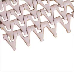 We offer Plastic Modular Straight Line Belts that is available in the model UMB-50 , UMB-38 , UMB-25 to our clients. These belts are extensively used as a general purpose light duty as well as heavy duty belt for several applications including straight line conveying, inclined conveying, washing line applications, warmers and cooling tunnels. Available with pitch of 25 / 38 / 50 mm, these are manufactured using different base polymers depending on the induced requirements. We offer these with transfer fingers width of 150 mm that make these suitable to use with RR (raised rib) model. Moreover, these are provided with guide strips that enables these for a smooth travel. Available in UHMWPE low-friction polymer, our complete range of belts is a combination of three different top surfaces and three different material to make it a multi-functional and can also be known as all-weather belt.